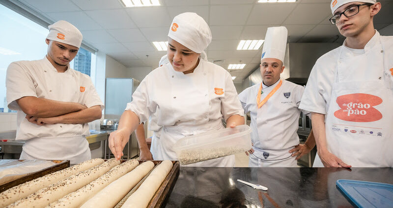 As inscrições para o segundo semestre do projeto De Grão em Pão estão abertas, oferecendo formação gratuita em panificação, confeitaria e culinária. Assim, o curso acontece em São Paulo (SP), Recife (PE) e Duque de Caxias (RJ). Jovens de 18 a 29 anos, moradores da periferia desses municípios, podem se inscrever até 4 de julho. A Fundação Bunge oferece bolsa-auxílio aos participantes, que após a formatura, começam a trabalhar em padarias próximas às suas residências com carteira assinada. Inscreva-se no site da Fundação Bunge.