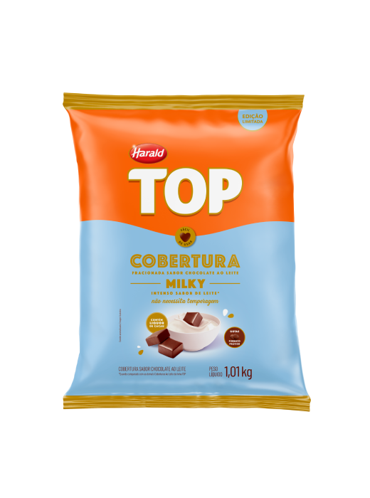 Com investimento estratégico para aumentar a qualidade e versatilidade, e trazer mais rendimento e praticidade, a Harald desenvolveu o TOP Milky em formato de gotas, que facilita o processo de derretimento e agiliza a produção de quem procura por cremosidade e intensidade de sabor para suas produções.