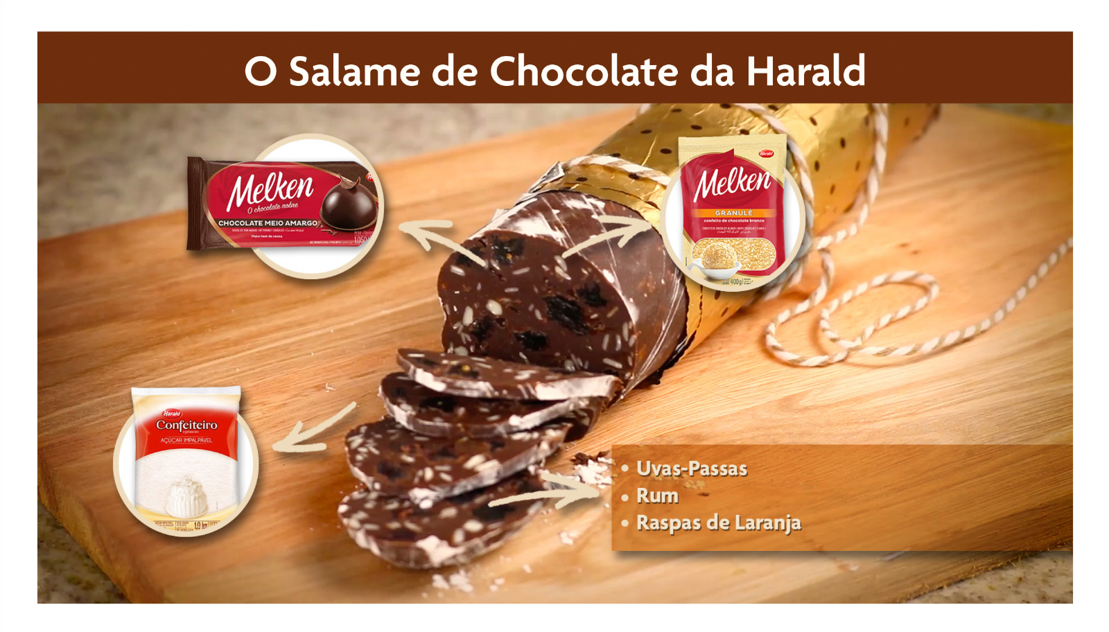 O salame de chocolate é um dos doces mais populares no Faça e Venda, devido à facilidade de preparo e à validade estendida. Criado na Itália, o nome do doce foi dado por causa da semelhança com o salame de carne suína. Além do formato cilíndrico, o recheio com castanhas e outros decorativos remetem aos pontos de gordura da carne, e o acabamento esbranquiçado com açúcar faz alusão ao mofo natural das versões especiais.
