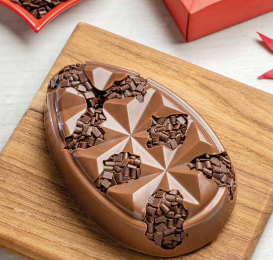 6. Pour the already tempered Melken Milk Chocolate over the brigadeiros. Do not vibrate the mold: the chocolate will fill in the free spaces.
