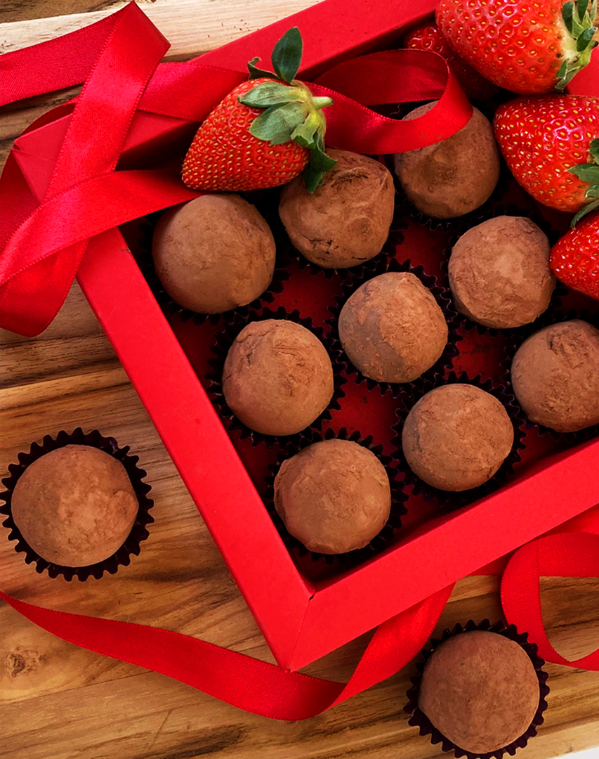 Dip the truffles in chocolate and coat them in cocoa powder.