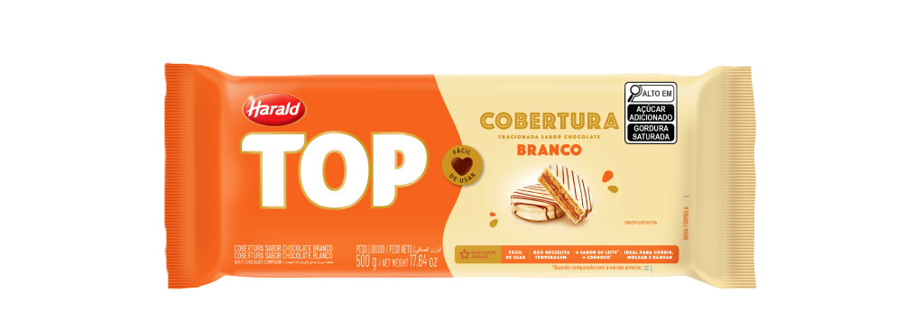 Leve mais suavidade e elegância às suas receitas com a Cobertura TOP sabor Chocolate Branco. Com visual claro e acabamento sofisticado, ela valoriza cada detalhe do preparo e é perfeita para criar doces que chamam atenção pela beleza e pelo sabor delicado.