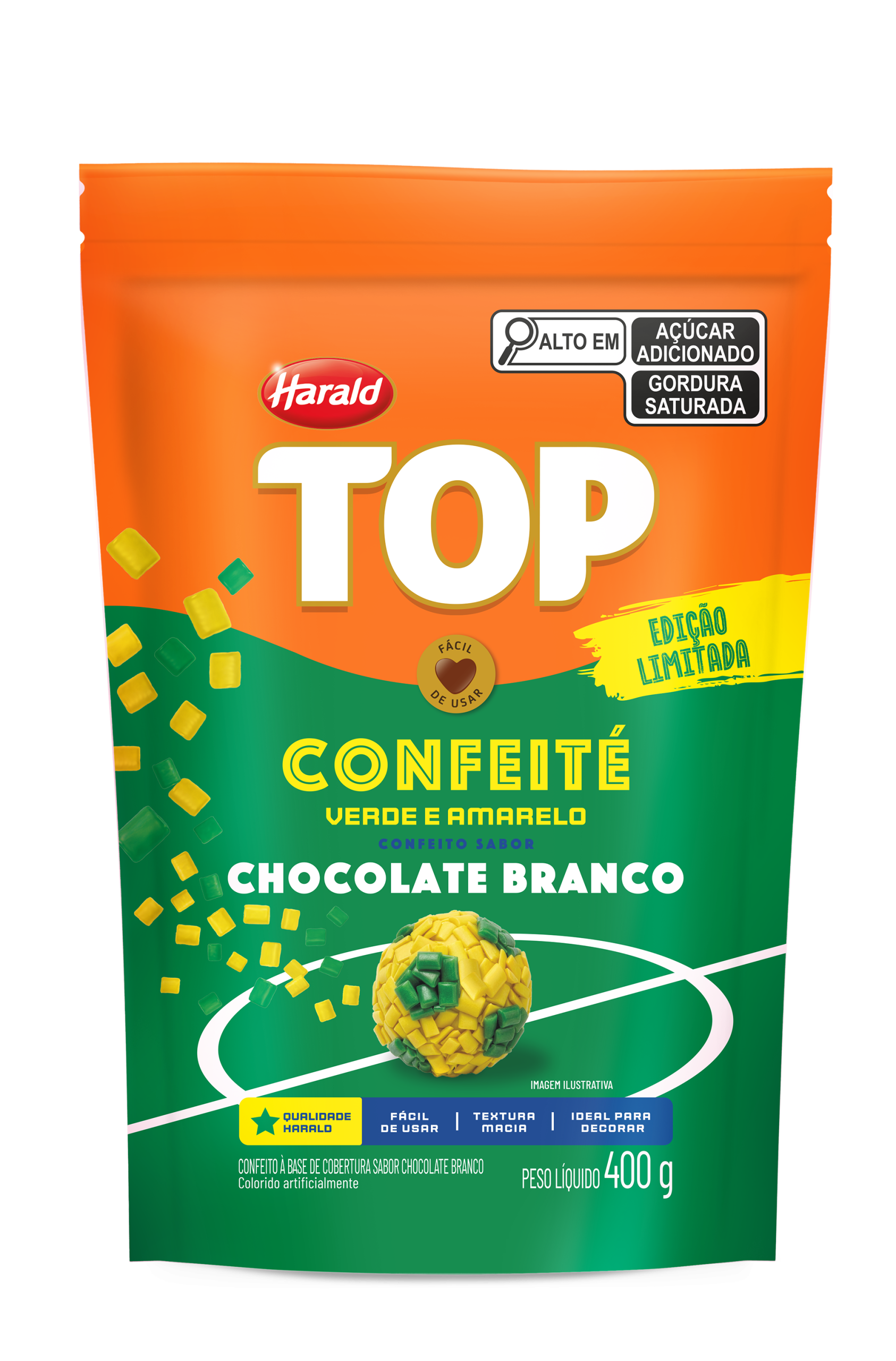 Dê um toque especial às suas criações com a mistura perfeita de cores vibrantes e o delicioso sabor de chocolate branco do Confeité TOP Verde e Amarelo. Em edição limitada, ele é a forma mais fácil de transformar qualquer doce em um verdadeiro destaque, acompanhando o clima de futebol com muito impacto visual na vitrine e sem complicação.