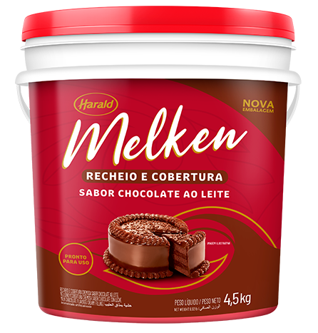 O Recheio e Cobertura Melken é um produto muito versátil para cobrir e rechear bolos, tortas e cupcakes. Com o sabor nobre do chocolate ao leite, tem excelente rendimento: 1 kg do produto é suficiente para cobrir e rechear fartamente um bolo de 2 kg (20 cm de diâmetro).