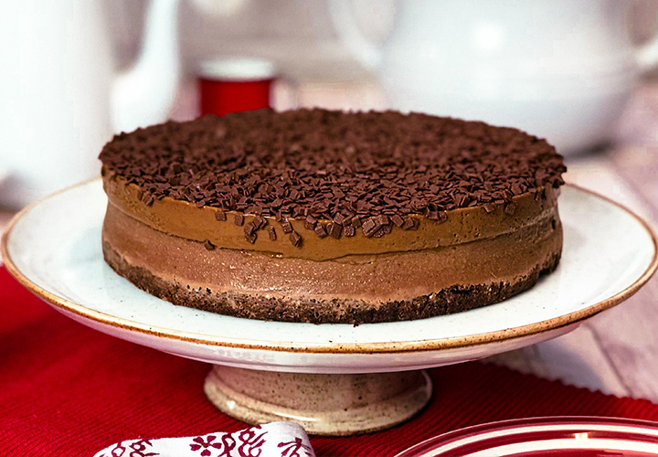 Coloque sobre as massas de chocolate previamente assadas e leve ao forno (160°C) por 20 minutos, em banho-maria. Retire do forno e espere esfriar.