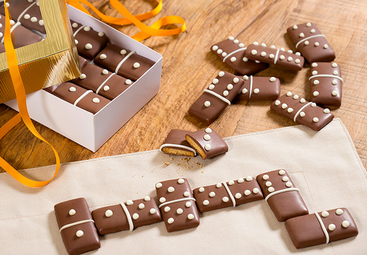 Embalagem: use uma embalagem que destaque o visual das peças, unindo o apelo de um brinquedo tradicional ao visual delicioso do chocolate. Em cada jogo, inclua uma folha de regras para facilitar a brincadeira.