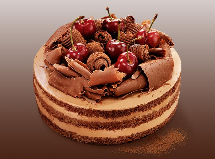 Montagem: corte o bolo na horizontal em três partes. Coloque um disco de massa dentro da forma utilizada para assar o bolo, molhe com um pouco de calda, espalhe 1/3 do recheio e cubra com outro disco de massa. Repita o processo finalizando com recheio. Desenforme em um prato de servir. Decore com as raspas e as cerejas e polvilhe o chocolate em pó. Mantenha na geladeira até a hora de servir.