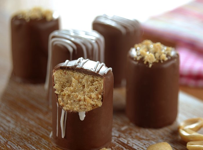 Mergulhe uma paçoquinha de cada vez na cobertura derretida e, com o auxílio do garfo, dê algumas batidinhas sobre o próprio chocolate para eliminar os excessos e tornar o banho fino e uniforme. Coloque as paçoquinhas banhadas sobre papel-manteiga e polvilhe-as com a paçoquinha esfarelada. Leve à geladeira por cerca de 10 minutos ou até que a cobertura esteja completamente seca.