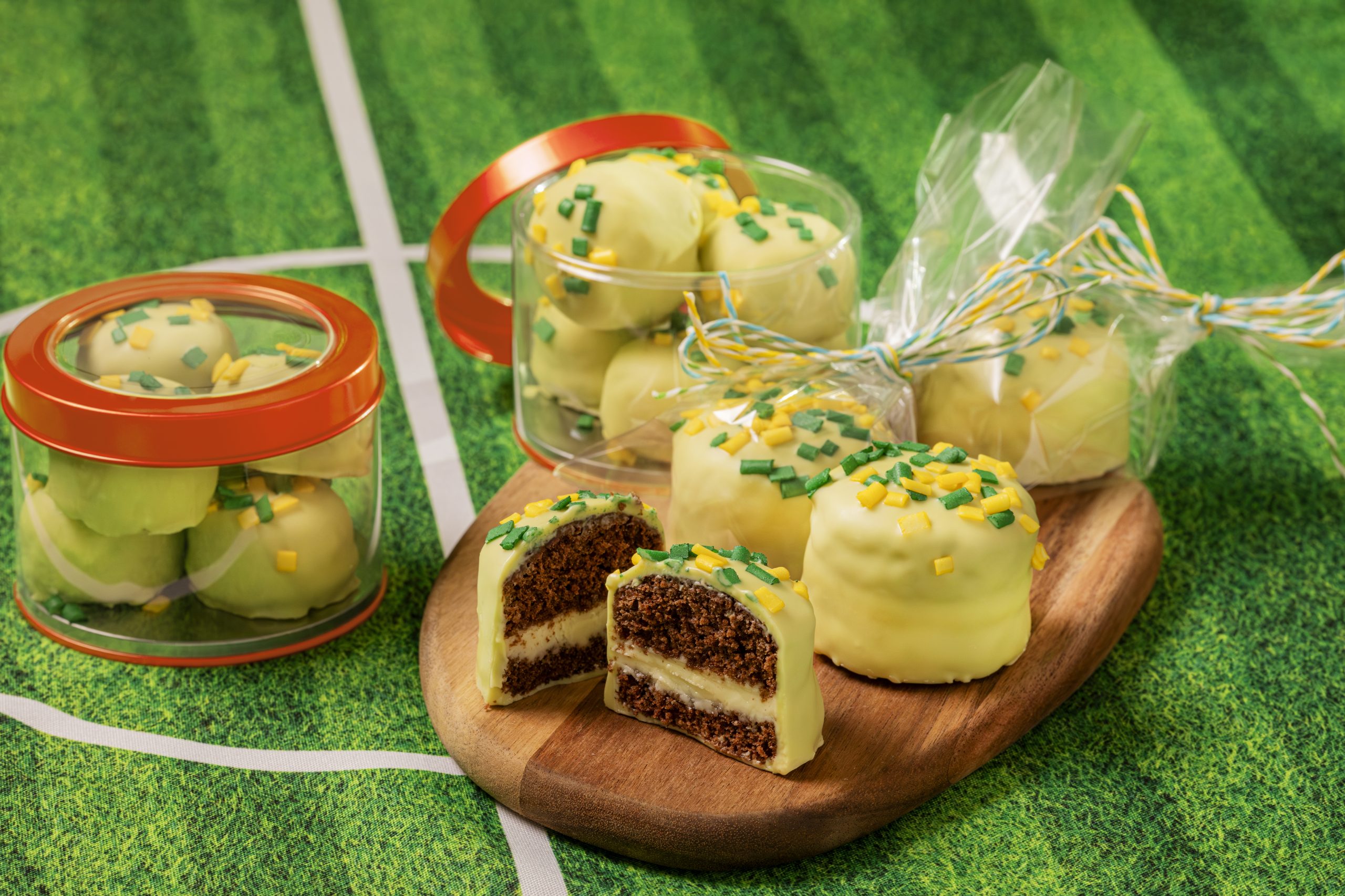 >Corte os pães de mel ao meio e recheie com Recheio e Cobertura Leitinho Melken e então feche e leve à geladeira por alguns minutos para firmar. Derreta a Cobertura TOP sabor Pistache conforme a embalagem. Banhe os pães de mel na cobertura e finalize com Confeité TOP Verde e Amarelo antes de cristalizar. Leve à geladeira até a cobertura cristalizar completamente.