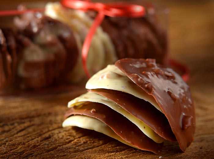 Derreta e tempere o Unique Brasil 35%. Misture o crocante ao chocolate temperado.