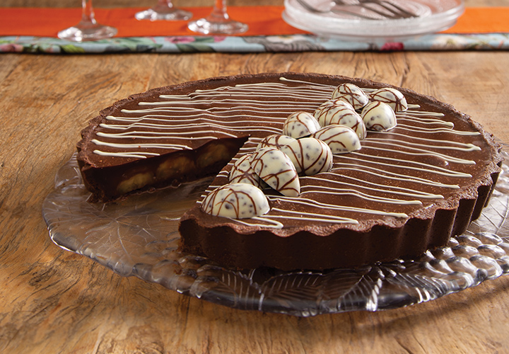 Decoração: passe o Melken Branco derretido para um cone de papel-manteiga e faça arabescos em ziguezague sobre a torta. Finalize com os miniovos.