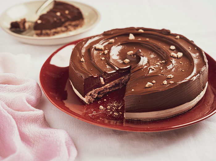 Recheio: em fogo brando, cozinhe o leite, as gemas e o açúcar, mexendo sempre, por cerca de 20 minutos, até atingir 82 °C ou até que o creme forme um risco que não se feche quando você passar o dedo pelas costas de uma colher. Despeje o creme quente sobre uma tigela com o Melken 70% Cacau e deixe agir por 2 minutos. Adicione a manteiga e misture bem. Reserve.